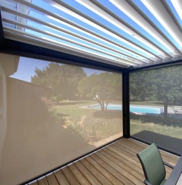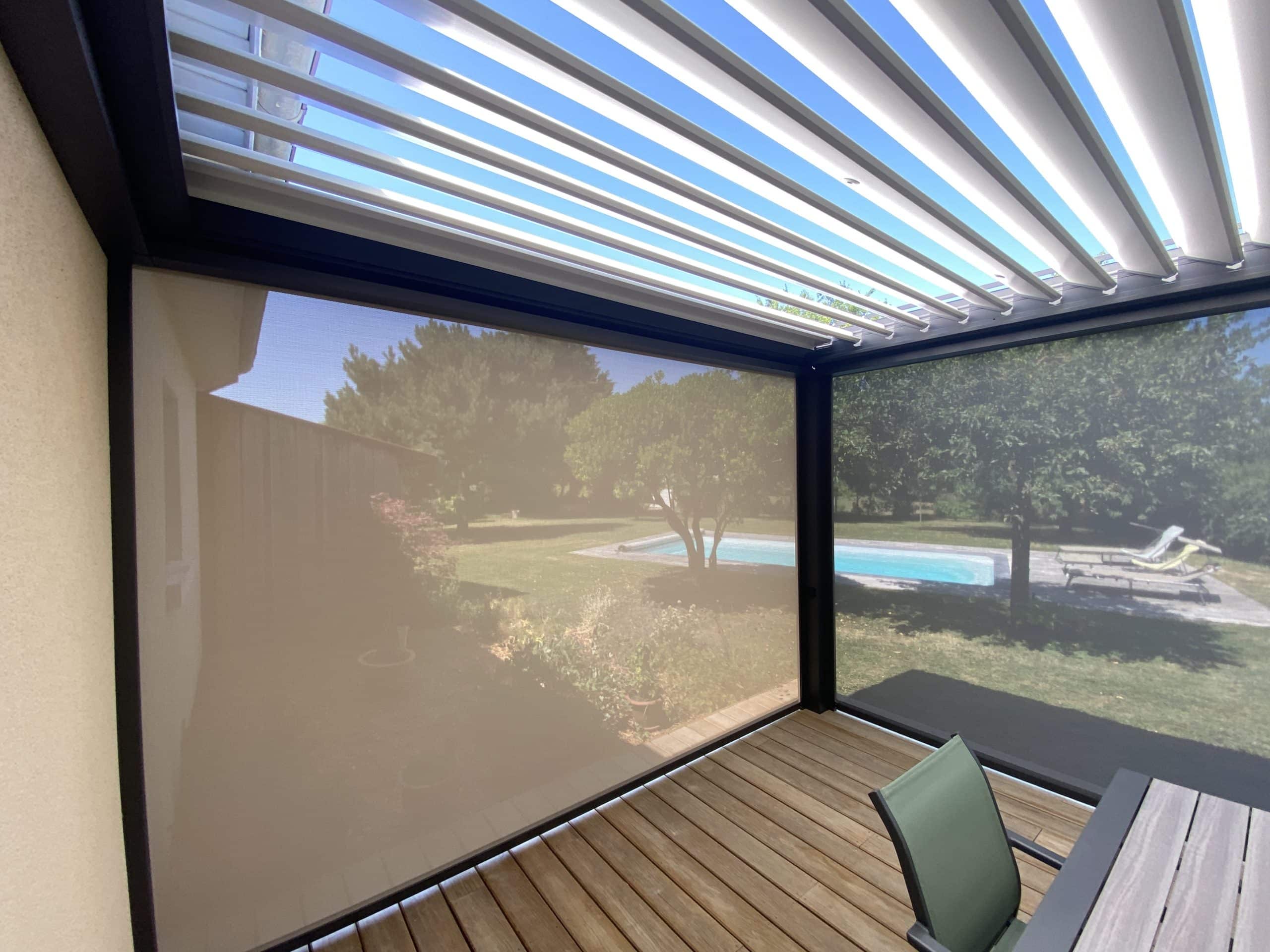 Cette pergola bioclimatique SAUMUR est équipée de 3 stores.
