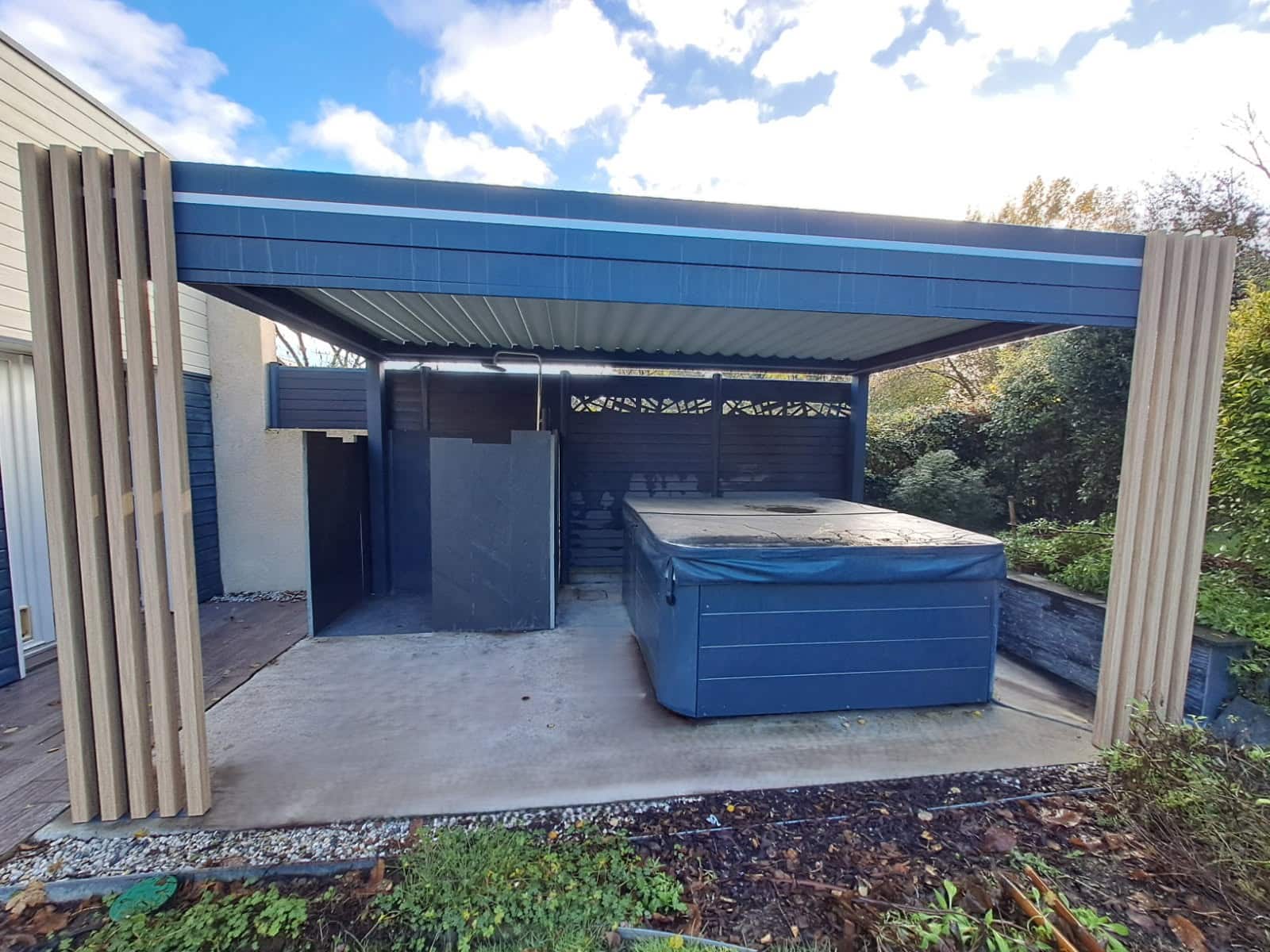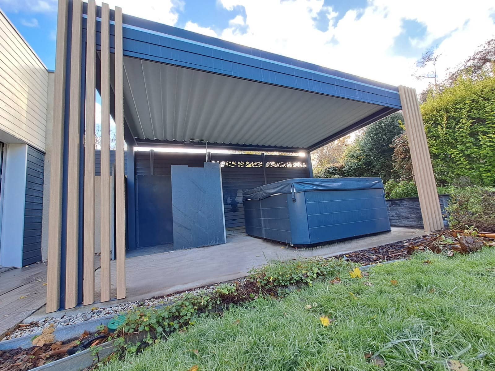 Le jacuzzi et la douche sont abrités par cette magnifique pergola bioclimatique.